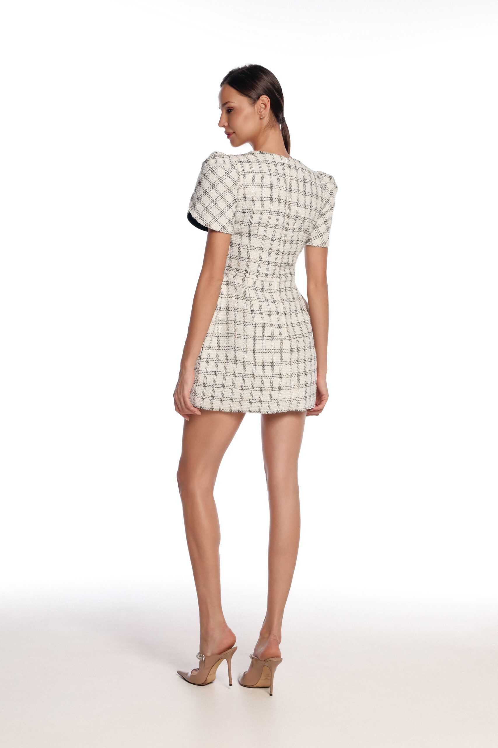 Haljina Naomi donosi bezvremenski šik u savremenom kroju. Kombinacija elegantnog dezena sa naglašenim ramenima i ženstvenim krojem stvara savršenu siluetu. Crni detalji dodaju notu kontrasta i sofisticiranosti, čineći ovu haljinu idealnim izborom za svečane prilike i elegantne večernje izlaske.